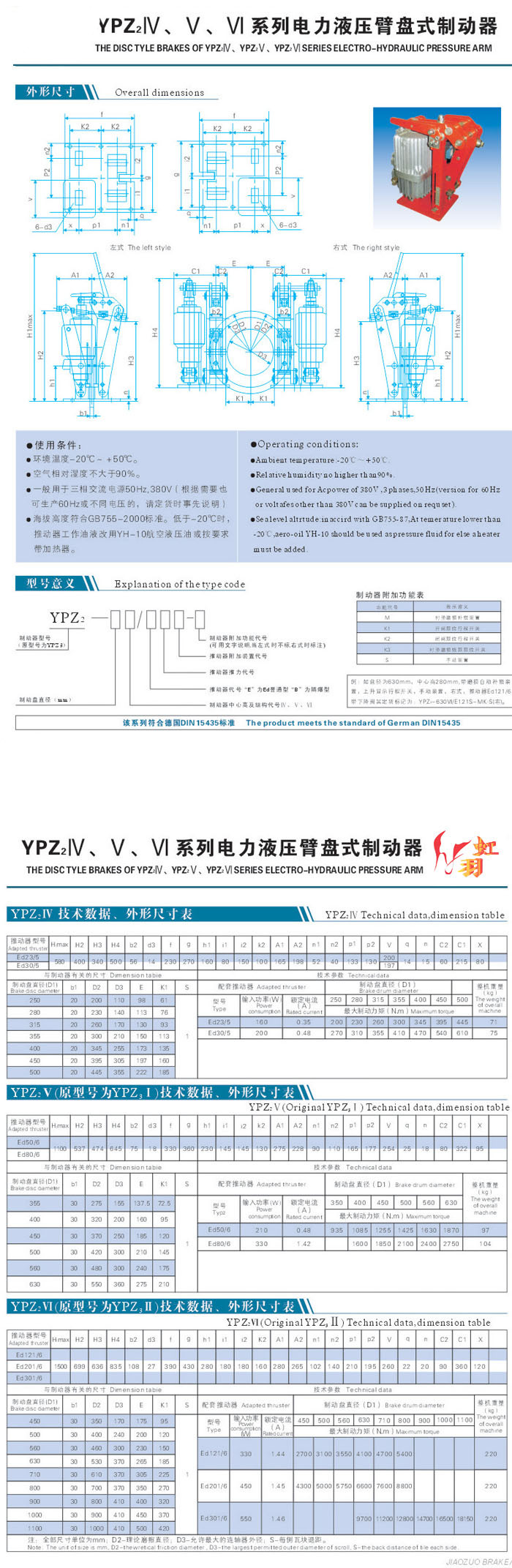 YPZ2Ⅳ、Ⅴ、Ⅵ系列系列電力液壓臂盤式制動(dòng)器