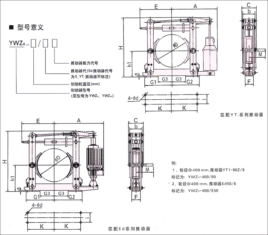 根據(jù)用戶需要制動(dòng)襯墊安裝形式有兩種:鉚接式和插入式(訂貨說明)
